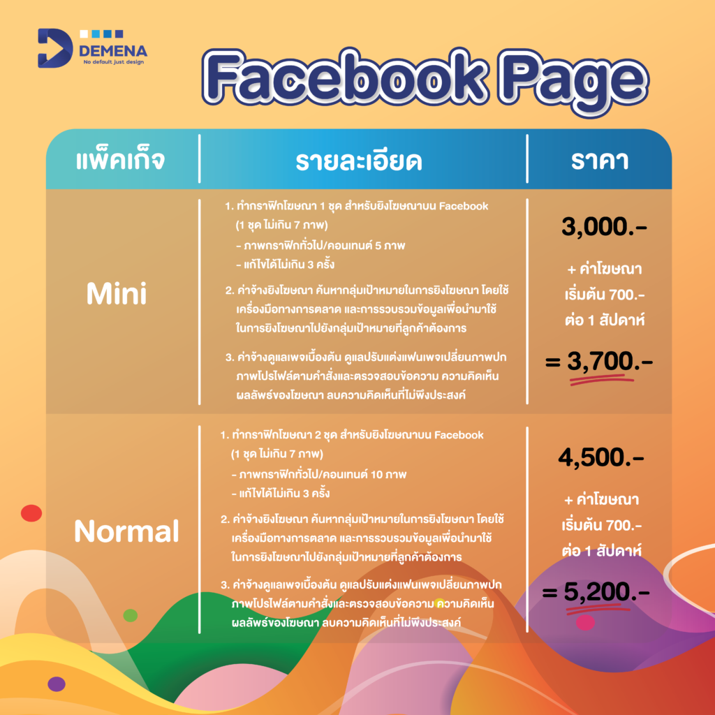 3. ค่าจ้างดูแลเพจเบื้องต้น ดูแลปรับแต่งแฟนเพจ